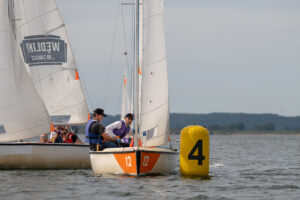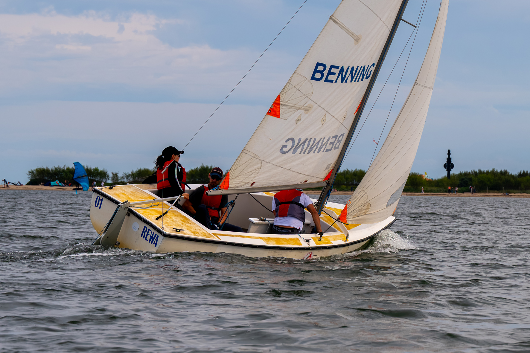 i nieformalny kapitan całego przedsięwzięcia – prof. Krzysztof Żółtowski z Politechniki Gdańskiej. W tym roku ponad setka uczestników, zwykle spotykających się na placach budów, tym razem zmierzyła się w zupełnie innych warunkach – na wodach Zatoki Puckiej. Część uczestników wydarzenia zbroiła się do zawodów już w piątek, biorąc udział w treningu dla chętnych. Wieczorem odbyły się odprawa załóg i losowanie grup startowych, poprzedzone wykładem ABC Żeglarstwa, wygłoszonym przez Kacpra Frąckowiaka – sędziego głównego regat i instruktora Yacht Clubu Rewa.