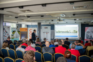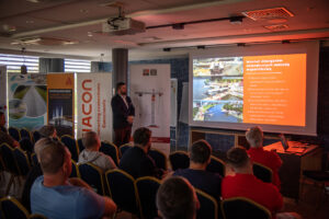 Nie mniej interesująco jak na wodzie było na lądzie, gdyż po zakończeniu eliminacji i srebrnego finału regat odbyło się seminarium branżowe, które otworzył Krzysztof Żółtowski, prof. Politechniki Gdańskiej. Następnie głos zabrał prof. dr inż. Adam Wysokowski, Przewodniczący Związku Mostowców Rzeczypospolitej, który zaszczycił swoją obecnością tegoroczne Nadmorskie Spotkanie Mostowców. Prelegentami w trakcie sesji technicznej byli przedstawiciele firm uczestniczących w spotkaniu. Jako pierwszy historię oraz profil działalności firmy Kormost SA przedstawił Marek Gotowski. Drugie wystąpienie dotyczyło szerokiego portfolio polskiej firmy Primost Południe, a wygłosił je jej Prezes Sebastian Nowak. Następnie Krzysztof Glebow z firmy SIKA zapoznał audytorium z rozwiązaniami stosowanymi w branży marine. Jako ostatni głos zabrał Łukasz Stachowicz z ViaCon. Przedstawił doświadczenie firmy oraz rozwiązania stosowane przy budowie obiektów gruntowo-powłokowych. Prelegenci zostali nagrodzeni brawami, a dodatkowo pani Małgorzata Skowronek – współorganizatorka Wrocławskich Dni Mostowych – wręczyła prezentującym jedną z najnowszych publikacji prof. Jana Biliszczuka.