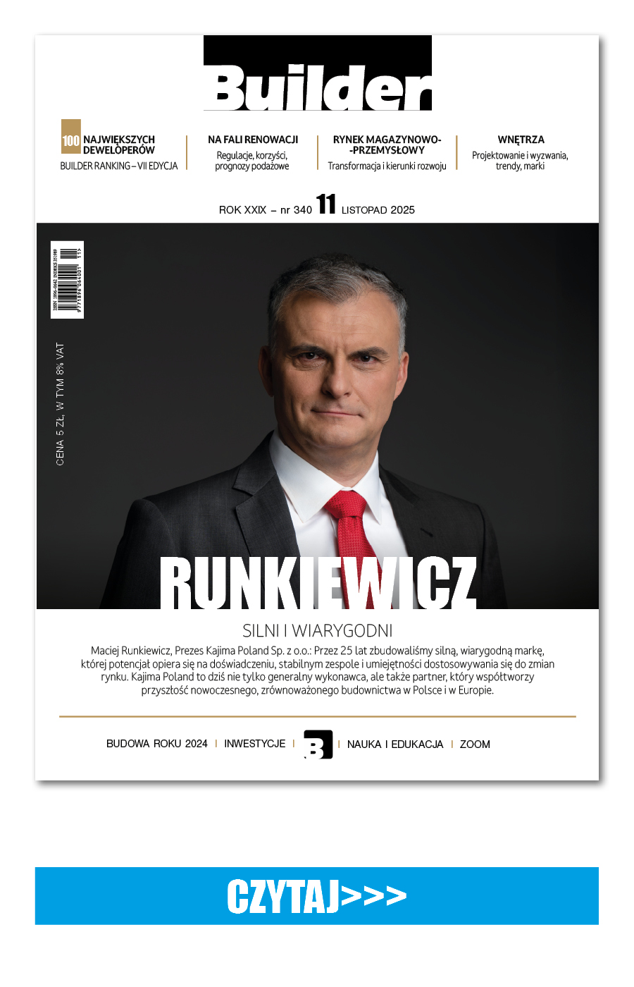 Okres jesienno-zimowy to czas podsumowań, dlatego w „Builderze” króluje wtedy nasz Ranking. W listopadowym numerze sklasyfikowaliśmy najsilniejszych deweloperów w Polsce. To już kolejna edycja prestiżowego projektu magazynu „Builder” realizowanego we współpracy z PwC Polska, analizującego kondycję polskiego budownictwa. Ranking opiera się na twardych danych finansowych – przychodach, zyskach i aktywach firm – ale równie ważne są inwestycje, które realnie zmieniają przestrzeń miejską.
