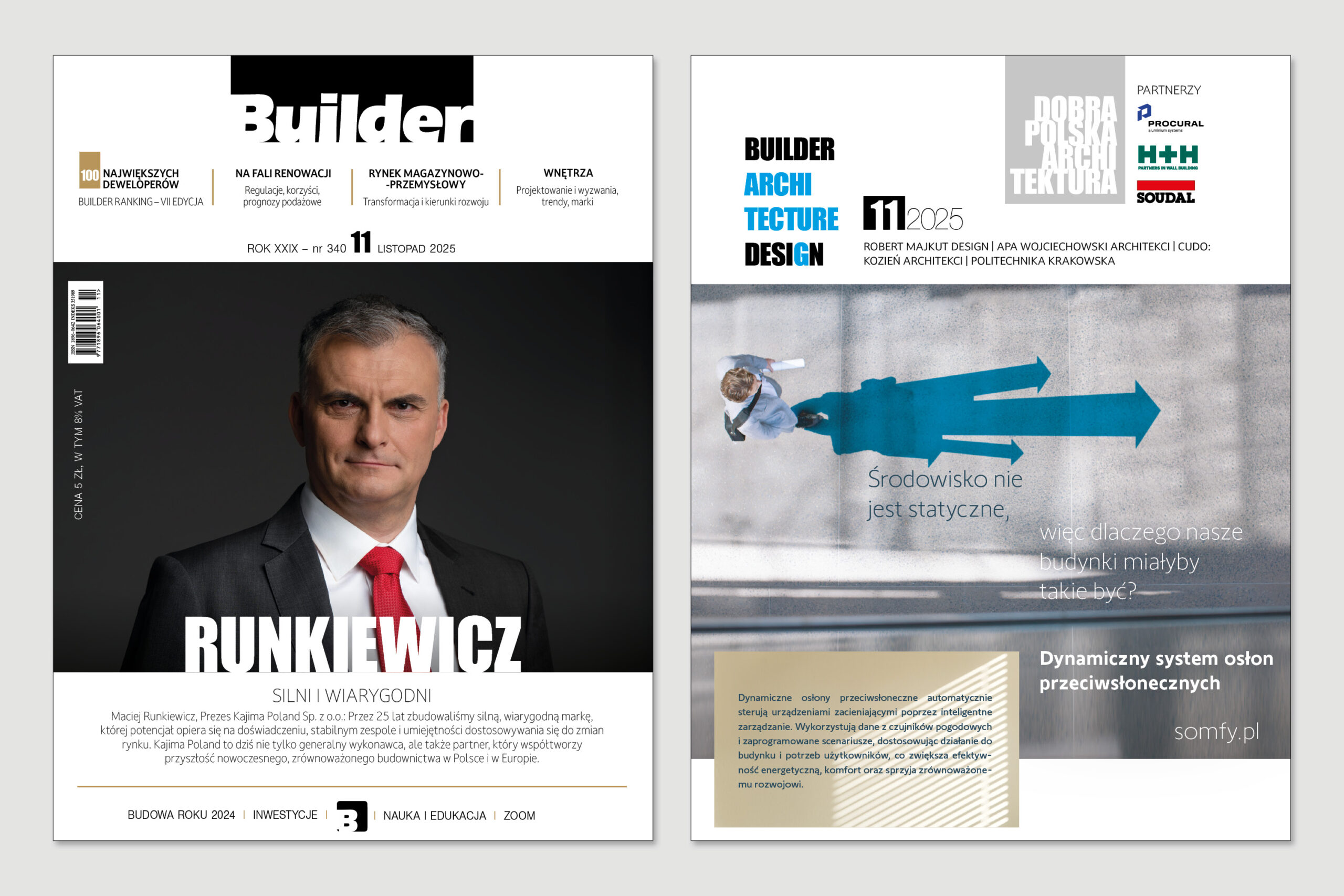 Okres jesienno-zimowy to czas podsumowań, dlatego w „Builderze” króluje wtedy nasz Ranking. W listopadowym numerze sklasyfikowaliśmy najsilniejszych deweloperów w Polsce. To już kolejna edycja prestiżowego projektu magazynu „Builder” realizowanego we współpracy z PwC Polska, analizującego kondycję polskiego budownictwa. Ranking opiera się na twardych danych finansowych – przychodach, zyskach i aktywach firm – ale równie ważne są inwestycje, które realnie zmieniają przestrzeń miejską.