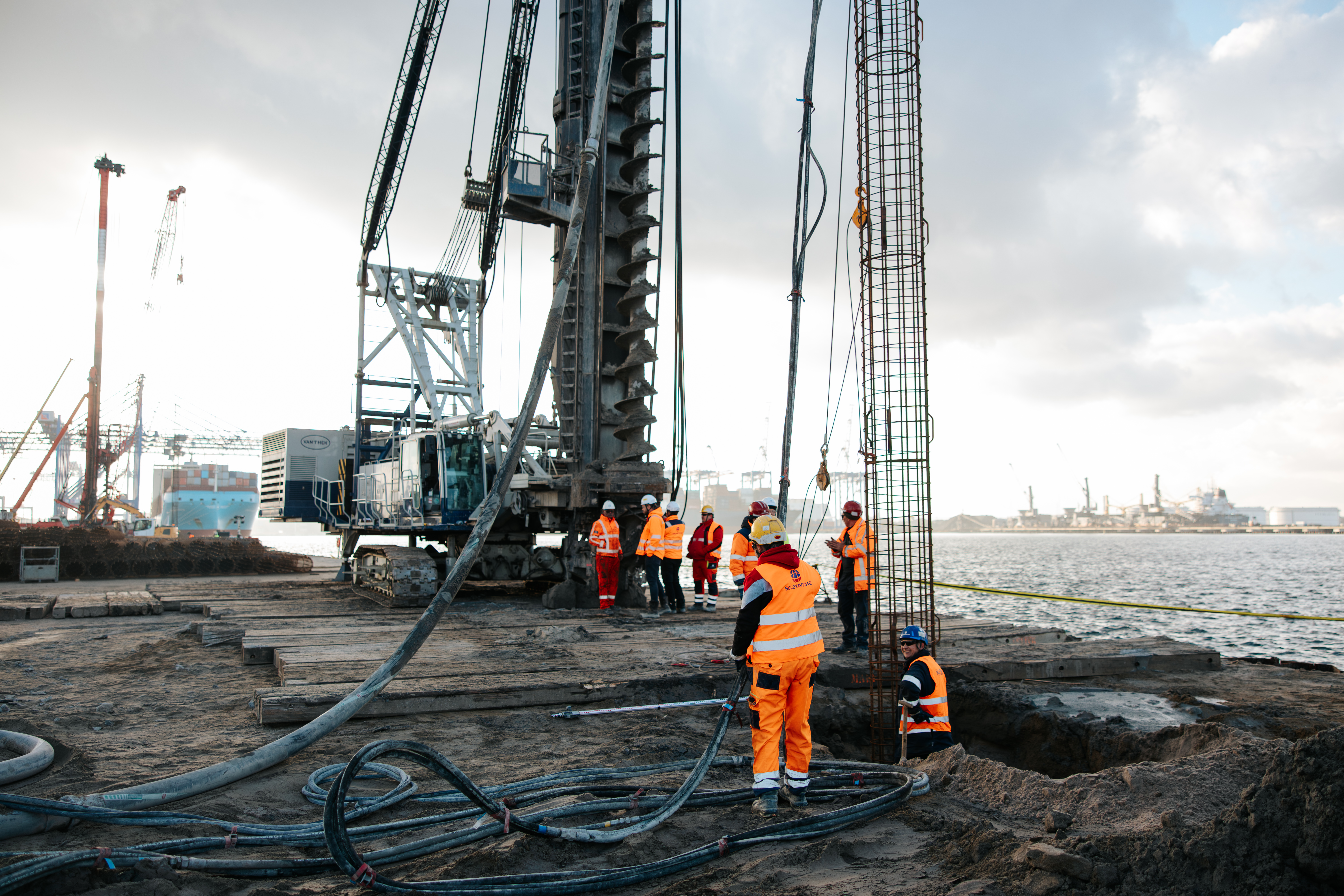 Prace fundamentowe realizowane przez Soletanche Polska obejmują wykonanie kilku typów pali CFA pod płytę nabrzeża oraz belkę podsuwnicową. Technologia pali ciągłych wierconych CFA okazała się w tym przypadku najefektywniejsza.