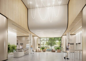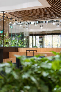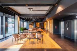 Jednak najważniejsze jest to, że idąc dziś do pracy czy na spotkanie, chcemy być pozytywnie zaskoczeni, zainspirowani – czy to ciekawą, budzącą pozytywne emocje architekturą, sztuką, naturalną zielenią, wspierającą technologią, czy także rozwiązaniami, które sprzyjają nawet przypadkowym społecznym kontaktom, czyli rozwiązaniami dospołecznymi. Należy do takich tworzenie w przestrzeniach ogólnodostępnych lobby wejściowego wielofunkcyjnej strefy, w której można zaczekać w wygodnych, różnorodnych siedziskach, popracować, zrobić sobie kawę lub herbatę, nalać wodę, zamienić z kimś kilka słów, przygotować się do spotkania, zrelaksować się, krótko mówiąc – poczuć się jak w gościnnym domu. To, czego również oczekujemy, to poczucie przynależności do przestrzeni, wrażenia, że to miejsce stworzone jest dla mnie i że mogę ewentualnie w określonej przestrzeni dostosować to wnętrze do swoich potrzeb. Równolegle chcemy spójności przestrzeni, chcemy czuć w różnych miejscach budynku, że w tej architekturze – od decyzji o lokalizacji budynku, przez formę architektury, funkcję, aż po materiały i rozwiązania – projektanci opowiedzieli jedną spójną historię, zrozumiałą dla użytkowników.