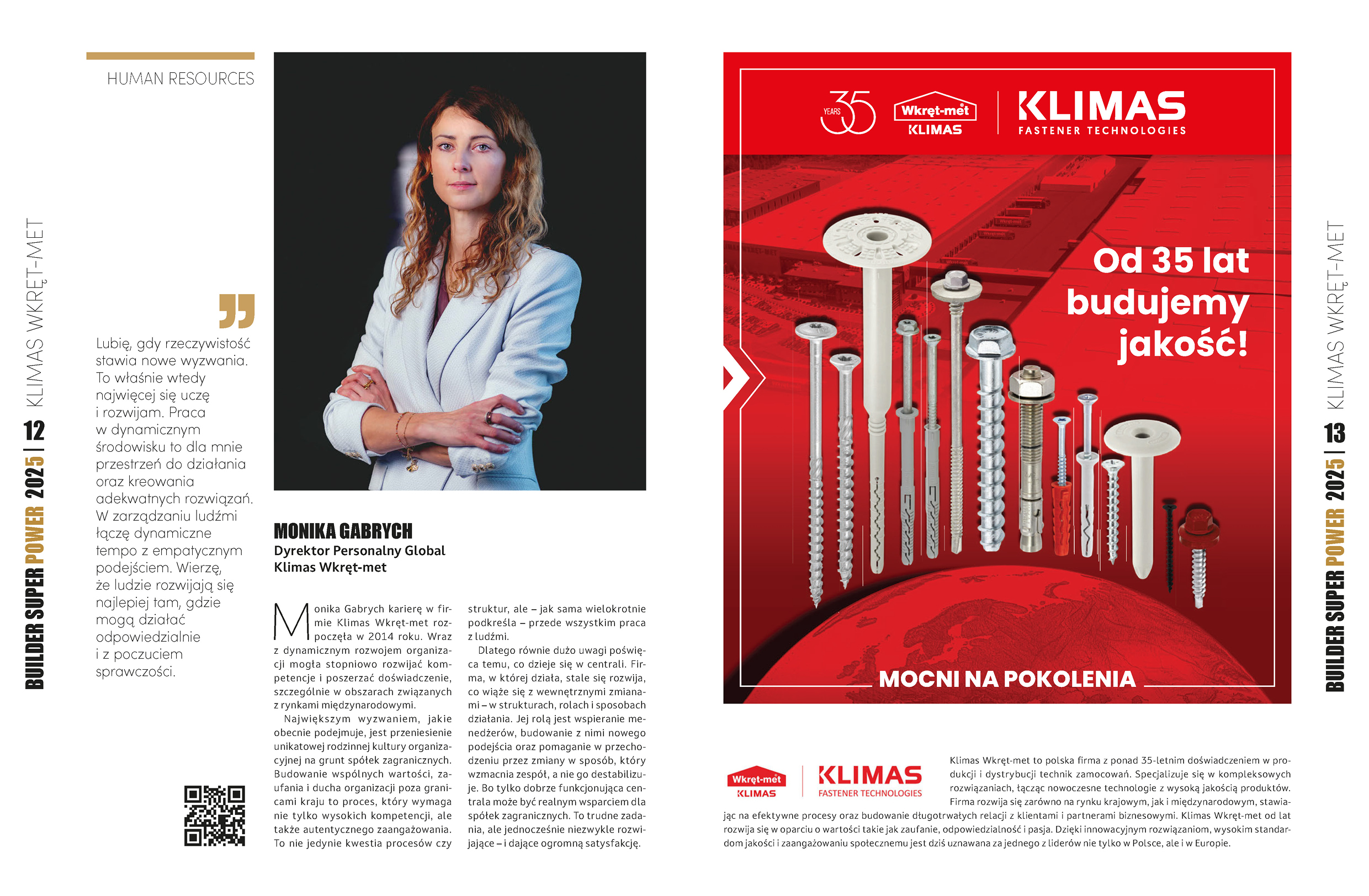 Monika Gabrych karierę w firmie Klimas Wkręt-met rozpoczęła w 2014 roku. Wraz z dynamicznym rozwojem organizacji mogła stopniowo rozwijać kompetencje i poszerzać doświadczenie, szczególnie w obszarach związanych z rynkami międzynarodowymi.