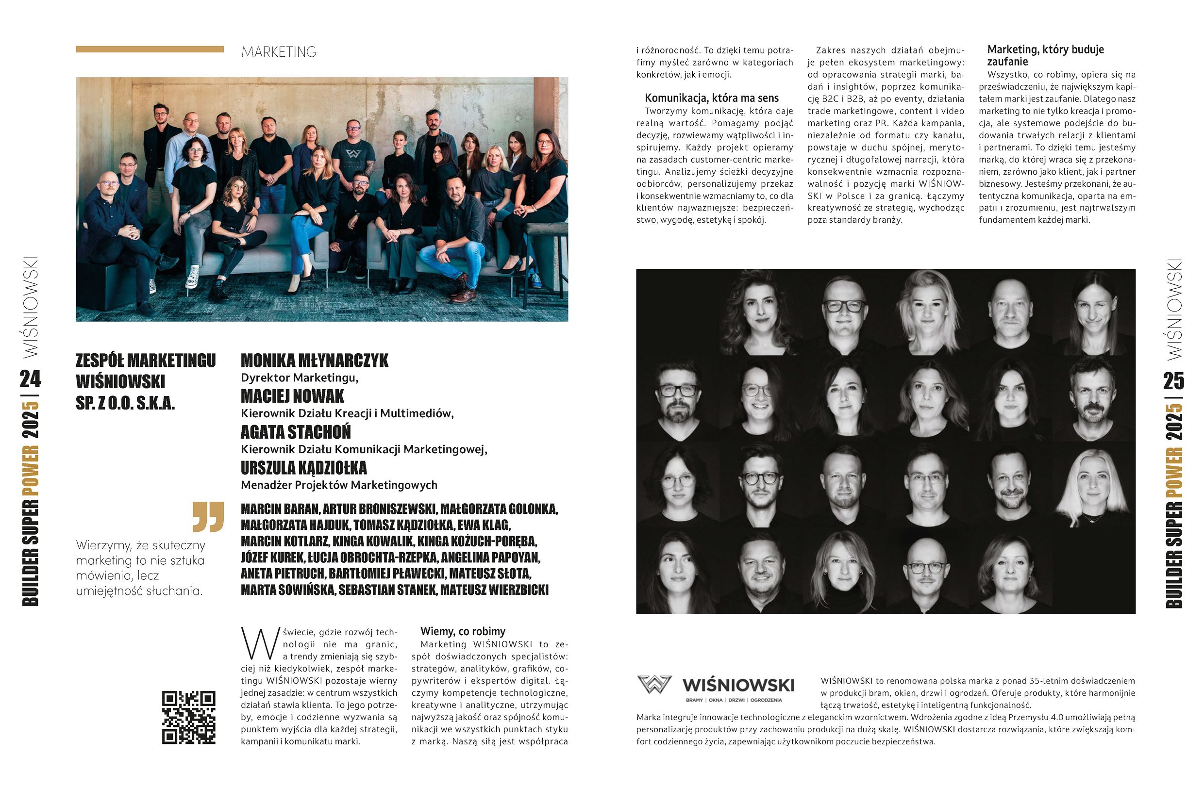 W świecie, gdzie rozwój technologii nie ma granic, a trendy zmieniają się szybciej niż kiedykolwiek, zespół marketingu WIŚNIOWSKI pozostaje wierny jednej zasadzie: w centrum wszystkich działań stawia klienta. To jego potrzeby, emocje i codzienne wyzwania są punktem wyjścia dla każdej strategii, kampanii i komunikatu marki.