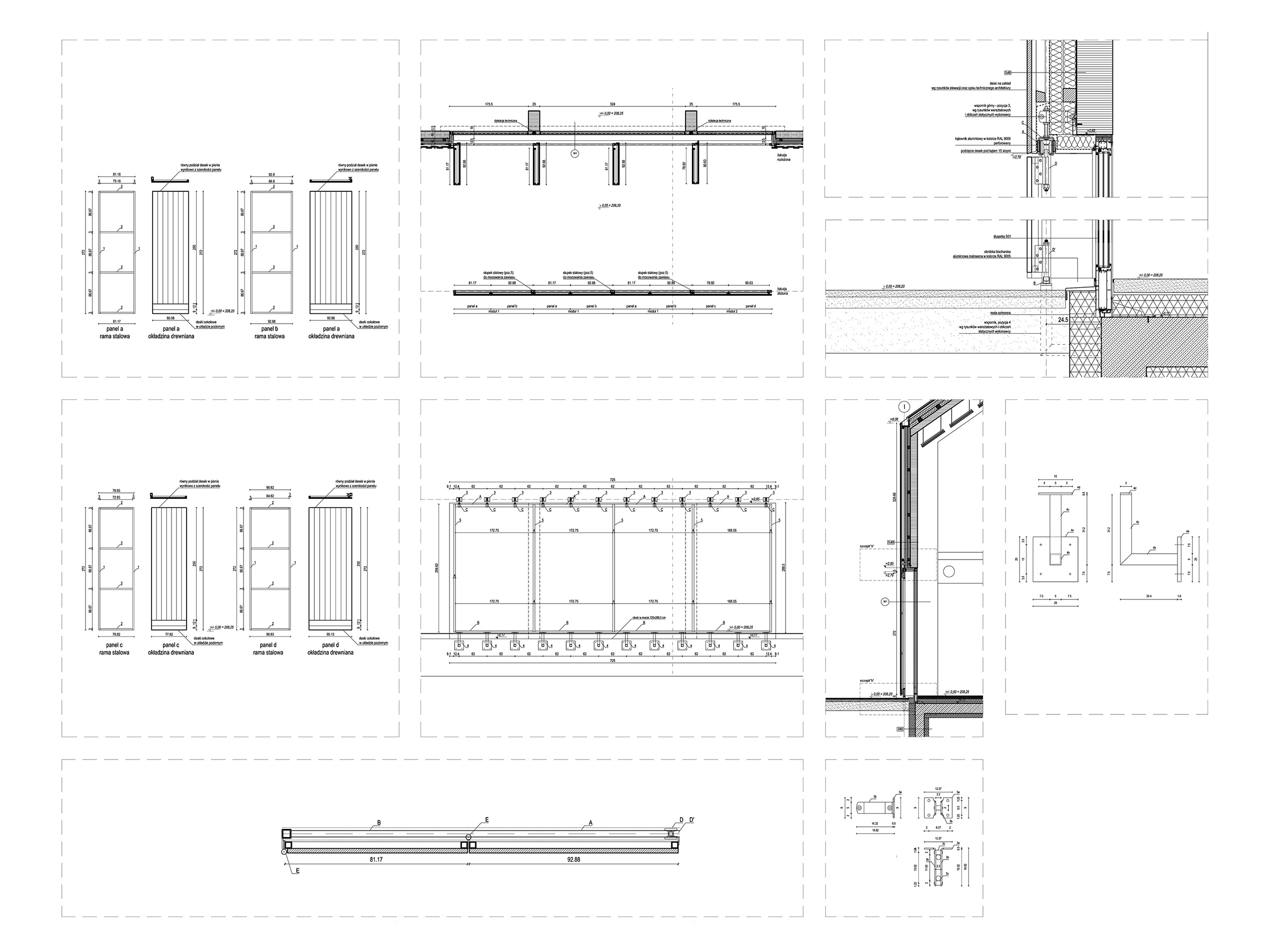 Układ przeszkleń podporządkowano funkcji wnętrz. Największe otwarcia pojawiły się na parterze (odsłaniają hol) oraz w przestrzeni wielofunkcyjnej na piętrze, w nadwieszonej części bryły widocznej od strony ogrodu. Część okien osłonięto okiennicami, które umożliwiają manualną kontrolę ilości światła i pozwalają całkowicie zamknąć bryłę. W sali ekspozycyjno-konferencyjnej są one pełne, a w przestrzeni biurowej – ażurowe. To rozwiązanie stanowi również świadome nawiązanie do regionalnej tradycji, w której drewniane okiennice były elementem charakterystycznym.