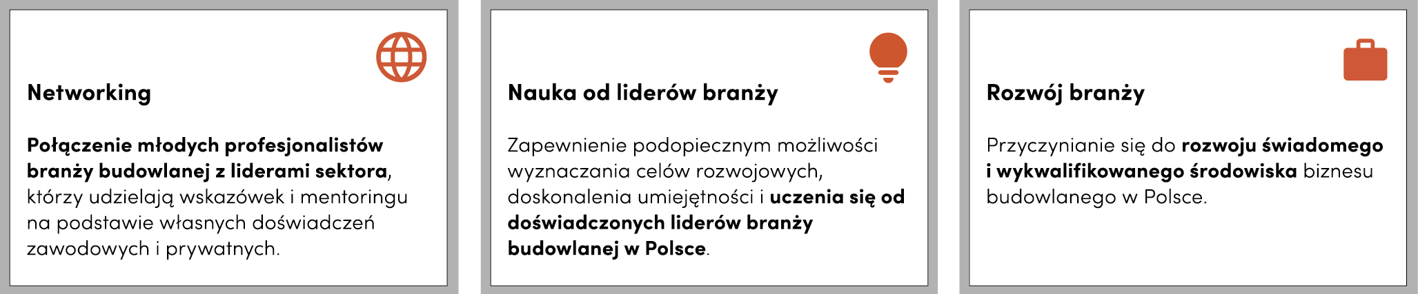 - osoby, które są liderami w organizacji lub aspirują do tej roli, a przy tym chcą wspólnie pracować i wymieniać się doświadczeniami z osobami z różnych stanowisk i firm z sektora budowlanego;