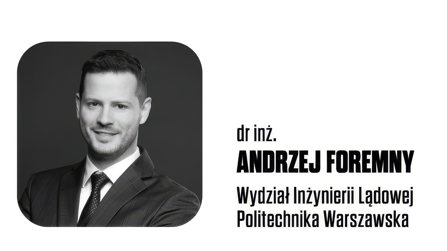 dr inż. Andrzej Foremny – ekspert w dziedzinie przygotowania i realizacji inwestycji budowlanych. Specjalizuje się w budownictwie mieszkaniowym i infrastrukturalnym. Prowadzi badania naukowe i wdrożenia AI do przemysłu. Laureat nagrody MRiT za najlepszą rozprawę doktorską w dziedzinie architektury i budownictwa.