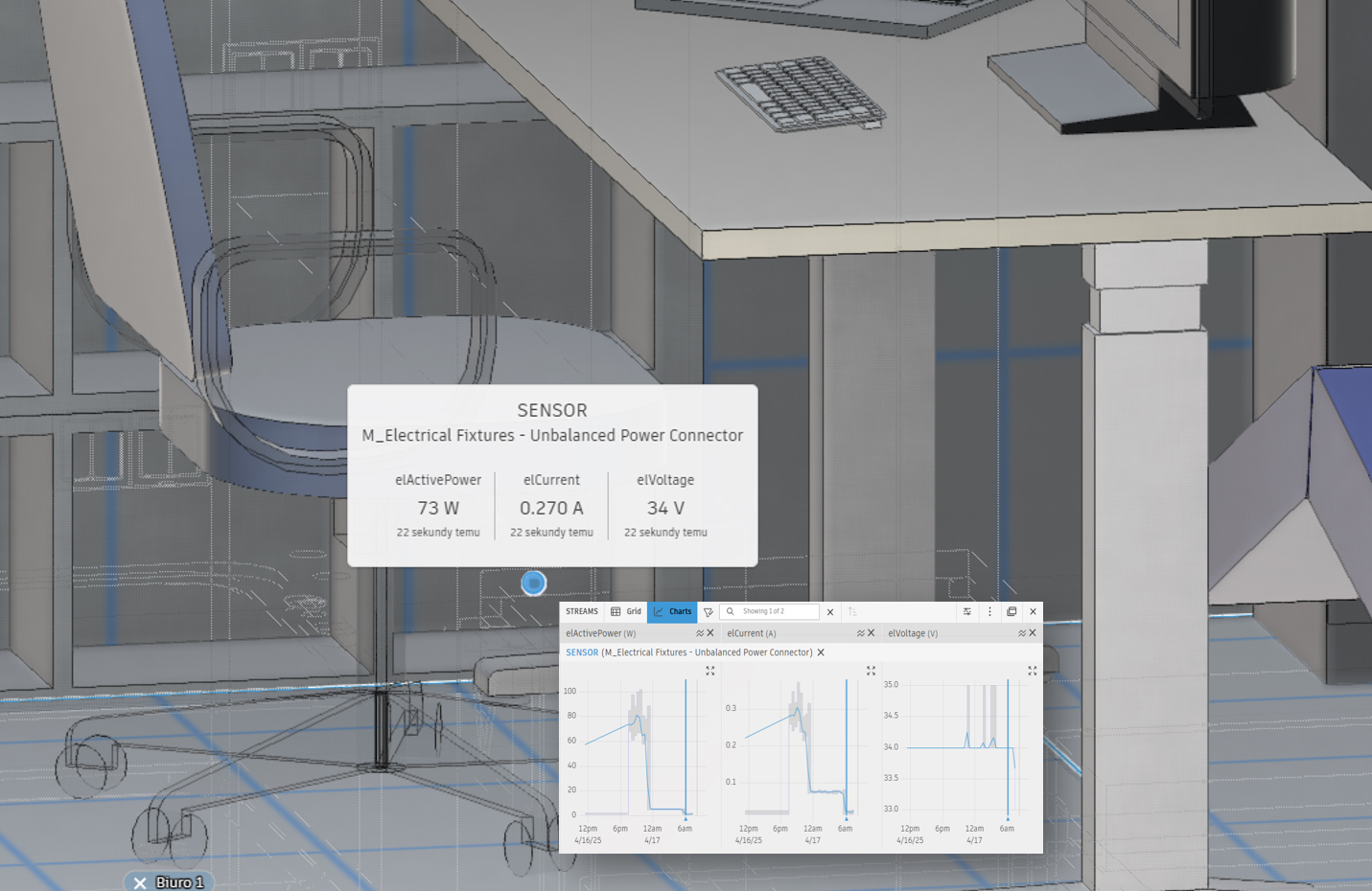 Odczyty z gniazda elektrycznego odpowiedzialnego za domowe biuro