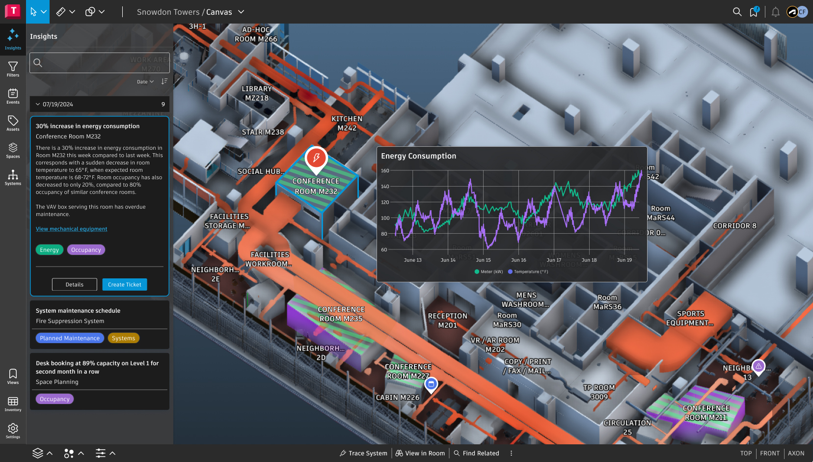 Z perspektywy właściciela to właśnie faza eksploatacji obiektu generuje największe koszty. Decyzje owymianie urządzeń, modernizacjachczy optymalizacji zużycia energii podejmowane są często w warunkachniepełnej informacji. Jeżeli budynekfunkcjonuje jako zbiór rysunków i rozproszonych plików, każda analizawymaga dodatkowego czasu i pracy.Cyfrowy bliźniak, zasilany danymiz czujników i systemów technicznych,ułatwia działanie i ogranicza zakresniepewności decyzyjnej. Umożliwia obserwowanie trendów, identyfikowanie anomalii i planowanie działań,zanim drobny problem przerodzi sięw kosztowną awarię.